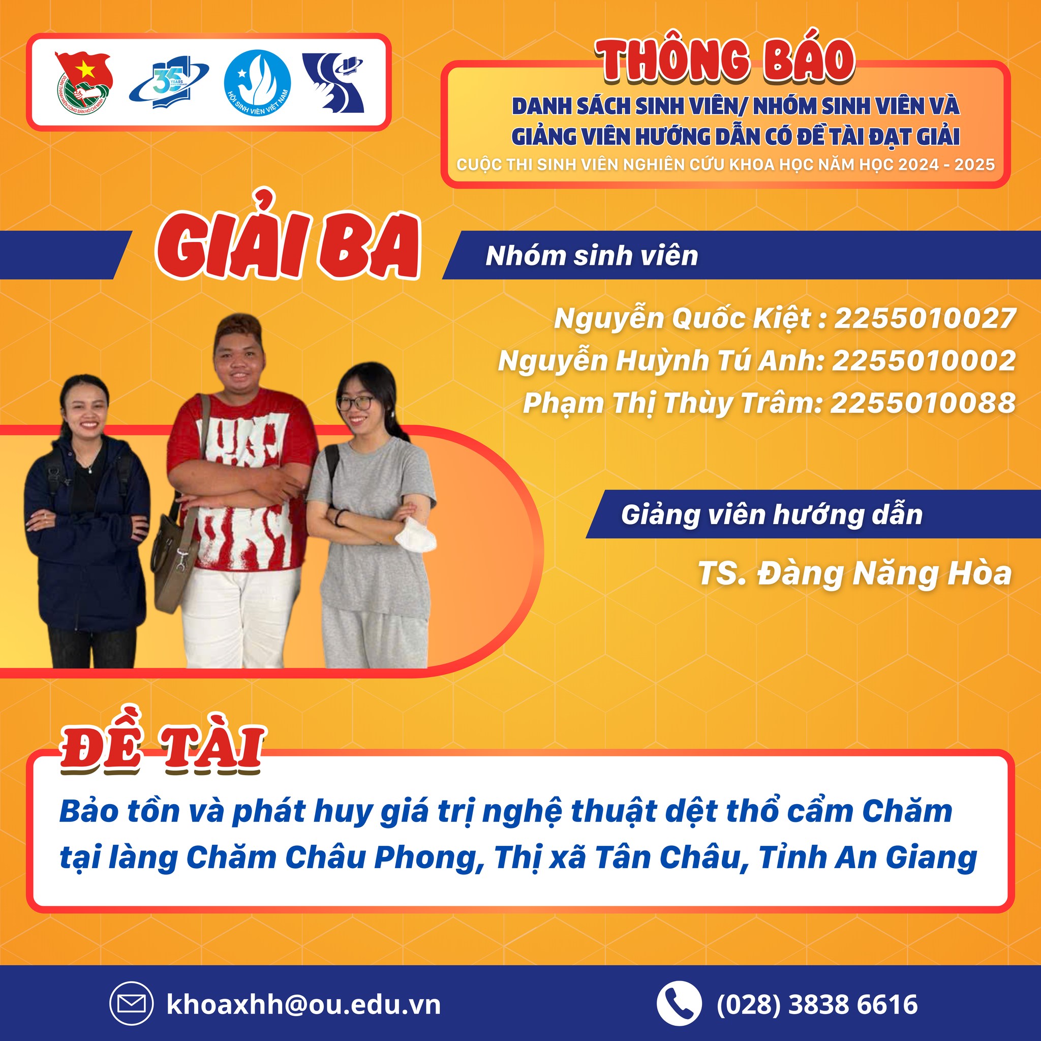 Sau một hành trình đầy nỗ lực với những quyết tâm không ngừng nghỉ, các bạn sinh viên/nhóm sinh viên Khoa Xã hội học – Công tác xã hội – Đông Nam Á đã xuất sắc ghi dấu ấn tại Cuộc thi Sinh viên nghiên cứu khoa học cấp Trường năm học 2024 – 2025. […]